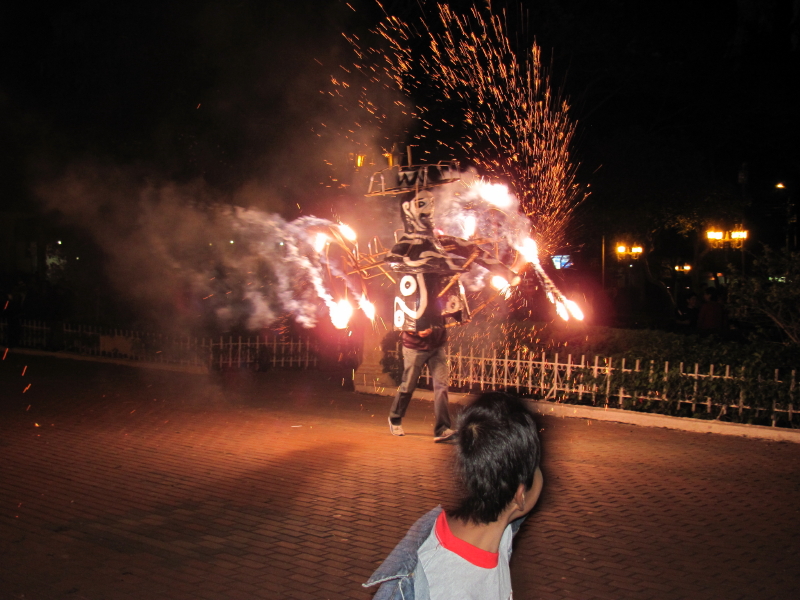 They let this live fireworks effigy run loose among the crowd.